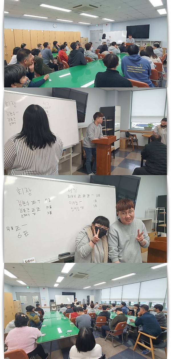 12월 자조모임 페이지 정보 작성자 관리자 작성일25-01-23 13:15 조회1,753회 댓글0건 이전글 다음글 목록 본문 12월 자조모임은 회장 및 서기 선거를 진행하였으며 직장생활하면서 건의 사항에 대해 논의하였습니다. 이전글 다음글 목록