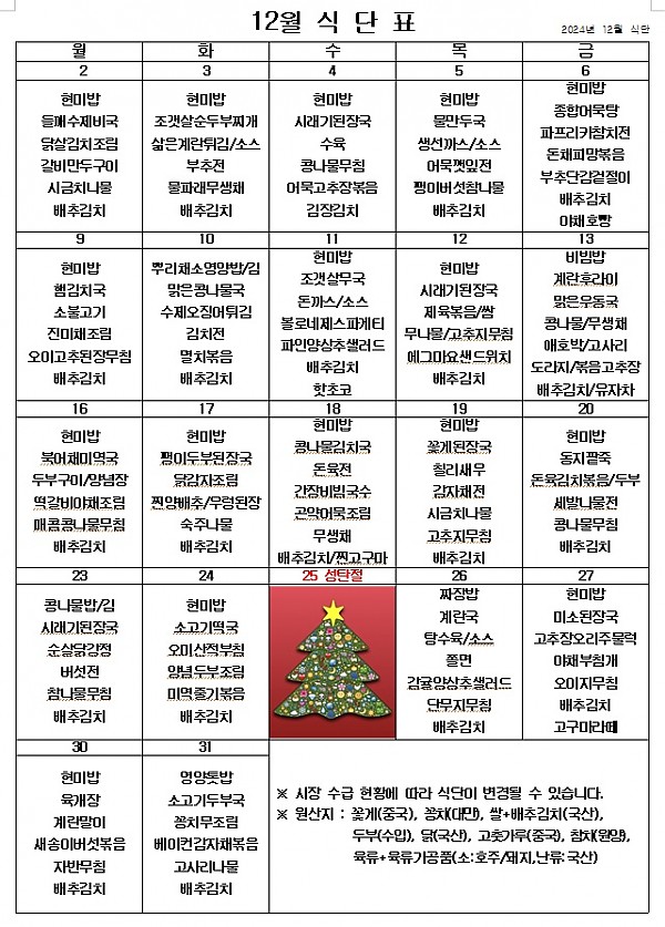 12월에도 이용인 자조모임 희망식단, 희망간식 메뉴를 적극 반영하고,