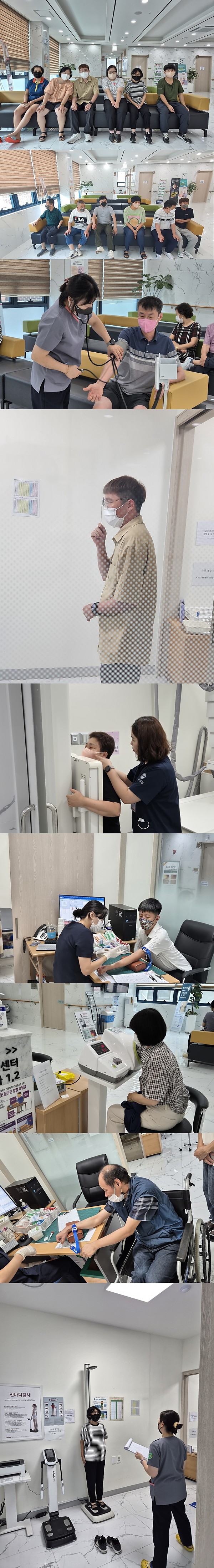 8월 이용인 건강검진(8. 21 ~ 22) 페이지 정보 작성자 관리자 작성일24-09-05 10:47 조회2,750회 댓글0건 이전글 다음글 목록 본문 센터 인근에 위치한 빛고을생생병원에서 이용인 건강검진을 실시하였습니다. 나의 몸이 건강한지 알아보고 예방하는 시간을 가졌습니다. 이전글 다음글 목록