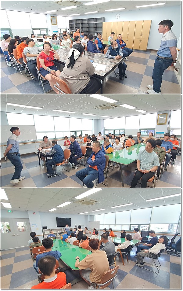 이용인 자조모임 페이지 정보 작성자 관리자 작성일24-06-07 17:05 조회3,181회 댓글0건 이전글 다음글 목록 본문 직장 생활에 있어 고민, 고충이 있으면 자조모임에서 해결해 나가고 있습니다. 먹고 싶은 식단이나 간식도 논의하여 익월에 제공할 수 있도록 하고 있습니다. 이전글 다음글 목록