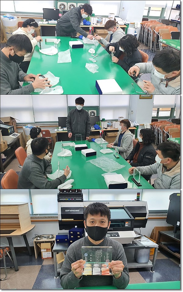 크리스탈 상패 제작과정을 배웠습니다.