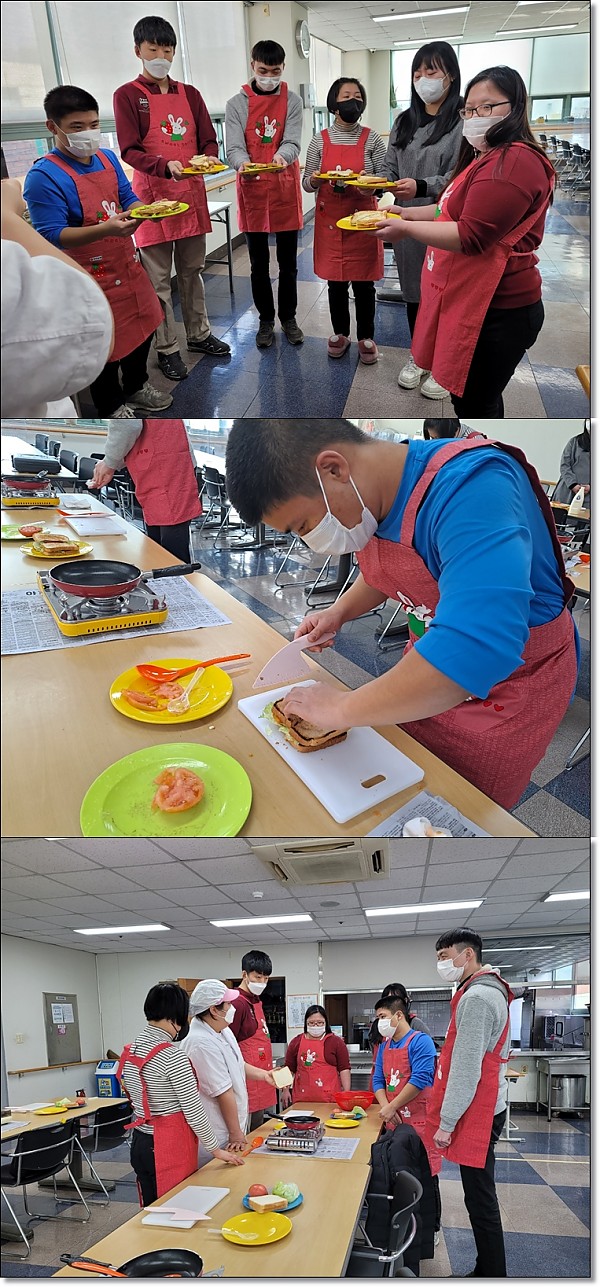 요리 프로그램 페이지 정보 작성자 관리자 작성일22-03-03 16:14 조회4,266회 댓글0건 이전글 다음글 목록 본문 이번 시간에는 샌드위치를 만들어 보았습니다. 요리도 즐겁고 맛도 좋은 시간이 되었습니다. 이전글 다음글 목록