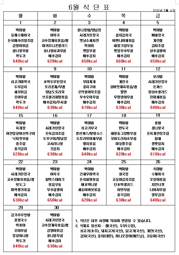 2020년 6월 식단