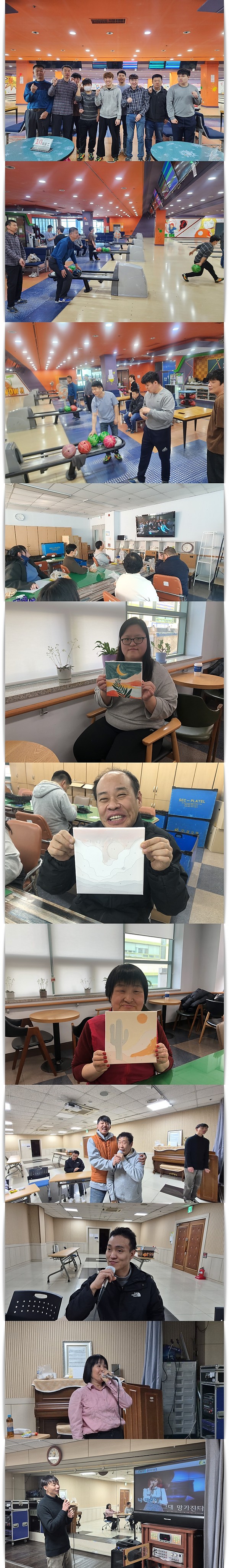 3월 이용인동아리활동 페이지 정보 작성자 관리자 작성일25-04-09 09:06 조회1,305회 댓글0건 이전글 다음글 목록 본문 이번 동아리활동은 볼링, 공예, 영화관람, 노래연습을 진행하였으며 이용인이 주최가 되어 활동할 수 있도록 지원하고 있습니다. 이전글 다음글 목록