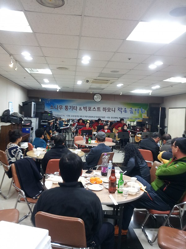 통기타소나무&빅포스트하모니 작은 음악회 개최 페이지 정보 작성자 정관용 작성일14-02-14 10:42 조회2,362회 댓글0건 이전글 다음글 목록 본문 통기타 소나무 동아리와 북광주우체국 직원분으로 구성된 빅포스트하모니팀, 그리고 풍암동색소폰앙상블이 함께하는 작은음악회가 2월 13일(목) 늦은 7시에 각화문화의집 문화관람실에서 열렸답니다. 작은 무대였지만 즐겁고 행복한 시간이 아니었나 싶네요~ 공연준비를 위해 열심히 연습하신 통기타 회원 여러분에게 박수갈채를 다시한번 보냅니다.^^ 이전글 다음글 목록