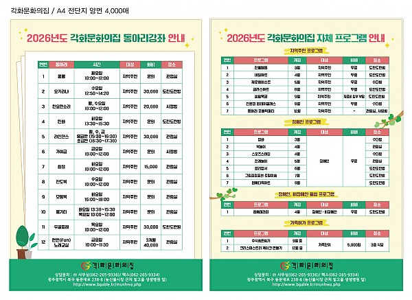 26년도 동아리활동 및 프로그램 안내 페이지 정보 작성자 정관용 작성일26-01-16 17:02 조회379회 댓글0건 이전글 다음글 목록 본문 26년도 동아리 전체 활동 안내 및 프로그램 안내합니다. 이전글 다음글 목록
