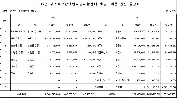 2017 광주북구장애인직업재활센터 결산 공고