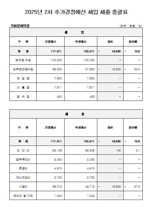 2. 공고사항 : 2025년 각화문화의집 2차 추가경정 세입·세출 예산서