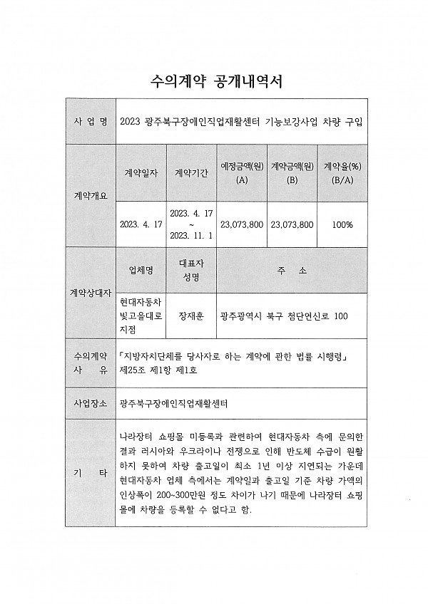 2023 기능보강사업 장비보강 수의계약 공개내역 페이지 정보 작성자 관리자 작성일24-05-10 10:13 조회11,957회 댓글0건 이전글 다음글 목록 본문 2023 기능보강사업 장비보강 수의계약 공개내역 이전글 다음글 목록